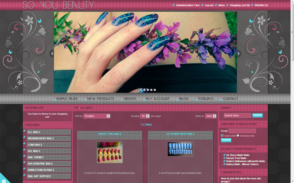 This site was designed to sell beauty products. The site needed to be stylish, showcase designs and also be interactive for the visitor. This site is designed to look good on both smaller screens (laptops) and large screens. The header contains a slideshow of photos and a flash animation either side.